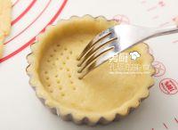 9.用拇指挤压派盘边缘,使派皮高出派盘一点,底部用叉子扎出小洞,防止派皮鼓起来。